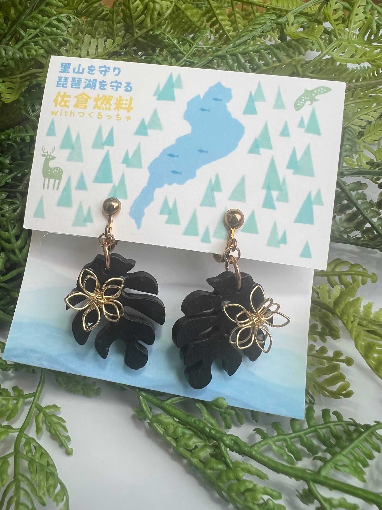 滋賀県産の炭を使用して作られたモンステラをモチーフにしたハンドメイドのネックレスです。
