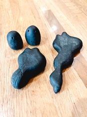 炭(木炭、竹炭、石炭)の粉末を接着剤と混ぜ、琵琶湖の形やユニークなキャラクターをモチーフに団子状に整形して乾燥させたオリジナルの炭団(たどん)です。